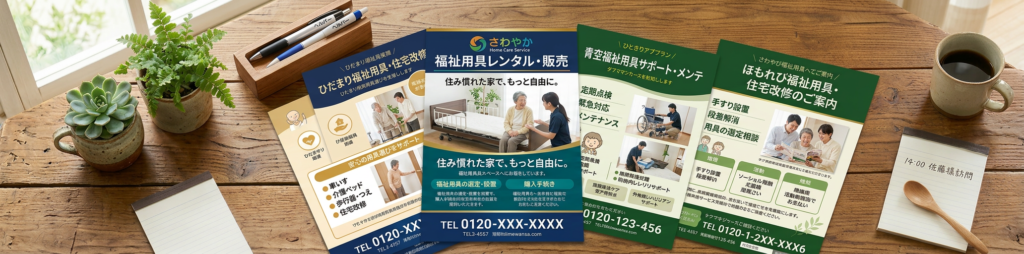 福祉用具レンタル会社の認知向上・利用促進に最適なチラシテンプレートです。